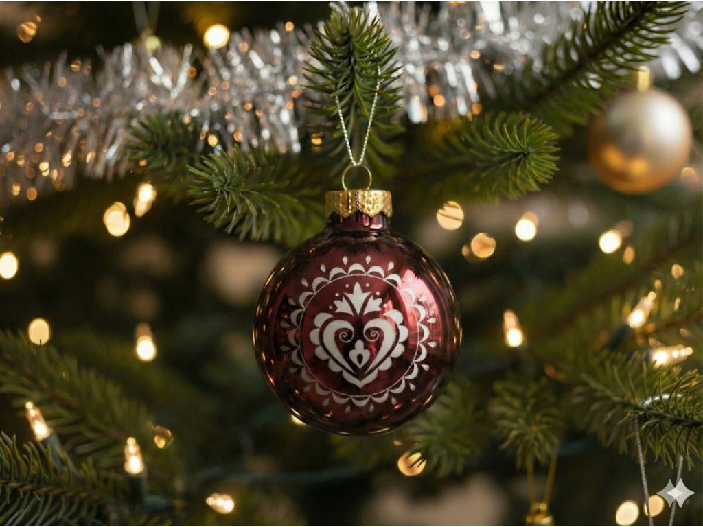 V sadě najdete 6 ks skleněných baněk zdobené lidovými ornamenty z Podluží. Jedná se o kombinaci 3 kusů matných a 3 kusů lesklých ozdob. Dřevěná krabička není součástí setu, ale je to doporučené příslušenství, které potom můžete využít, jako krabičku na čaje: https://www.malovanetradice.cz/svatebni/krabicka-na-caje/